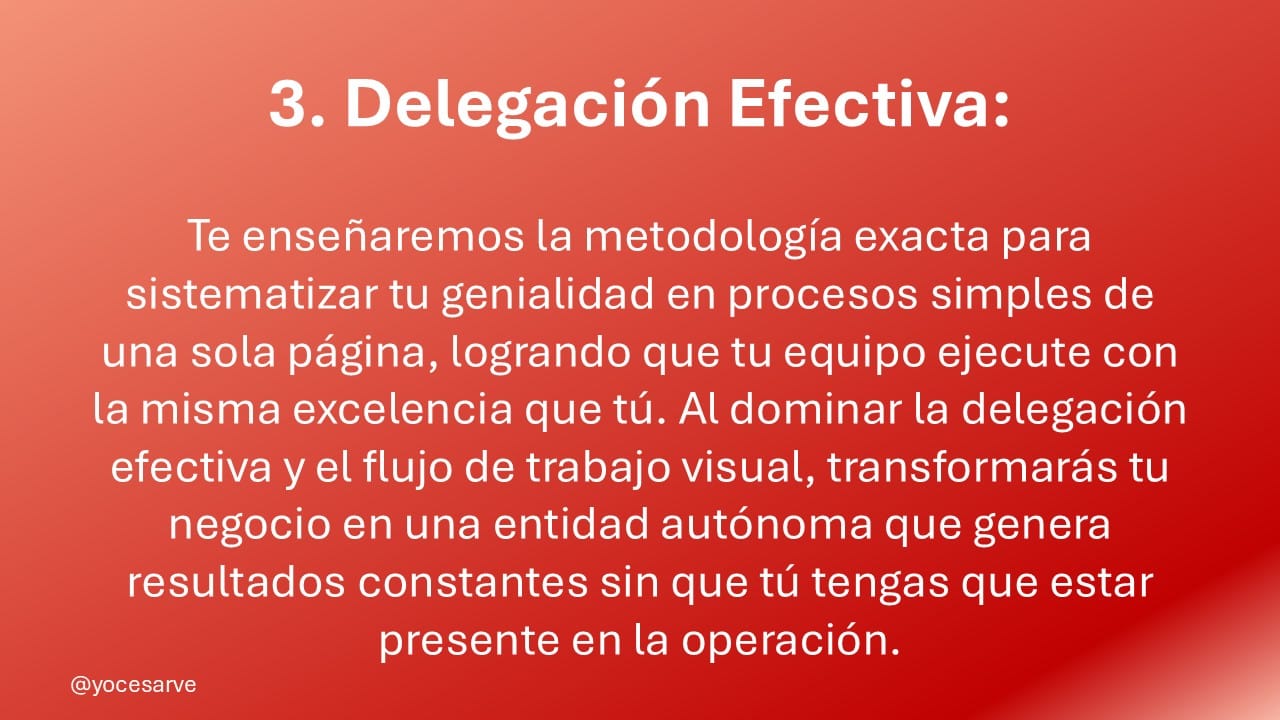 Aplique el Método de 5 Pasos para delegar con confianza, estandarizar sus procesos y recuperar tu libertad sin que las ventas se detengan.